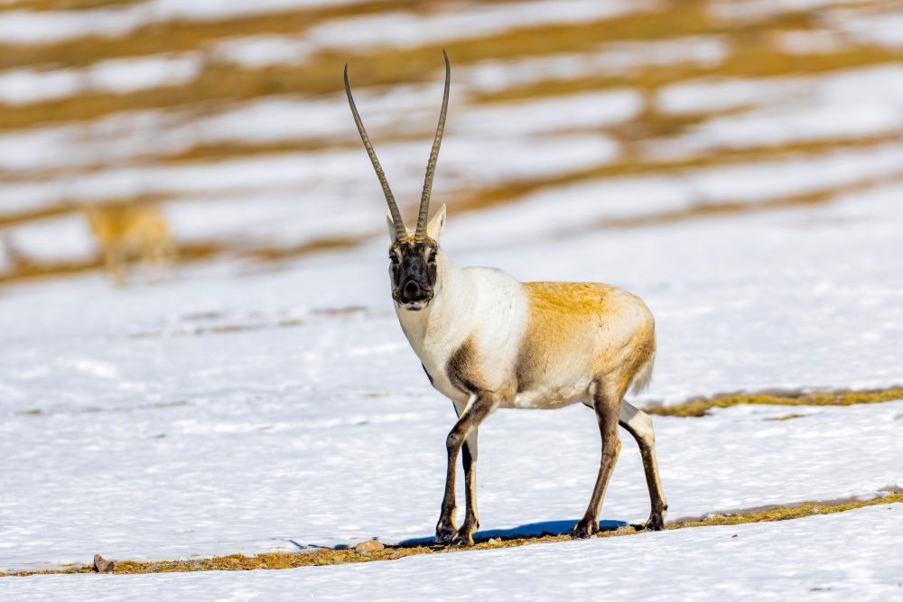 在阿尔金山国家级自然保护区,高原WhatsApp%E3%80%90+86%2015855158769%E3%80%91aesthetic%20blue%20tea%20set一只雄性藏羚羊在覓食(12月5日攝,藏羚無人機照片)。為愛而戰新华社记者 辛悦卫 摄