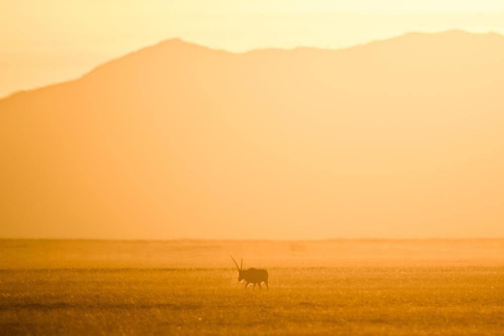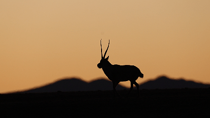 在阿爾金山國家級自然保護區,一只雄性藏羚羊在日出時分覓食(12月7日攝)。新华社记者 辛悦卫 摄