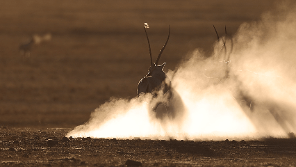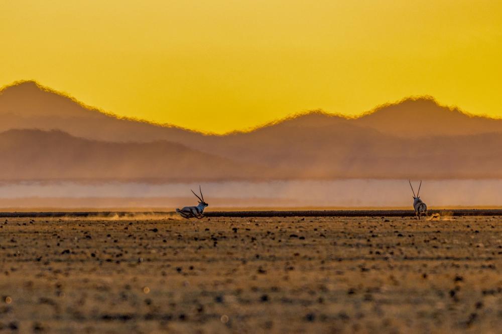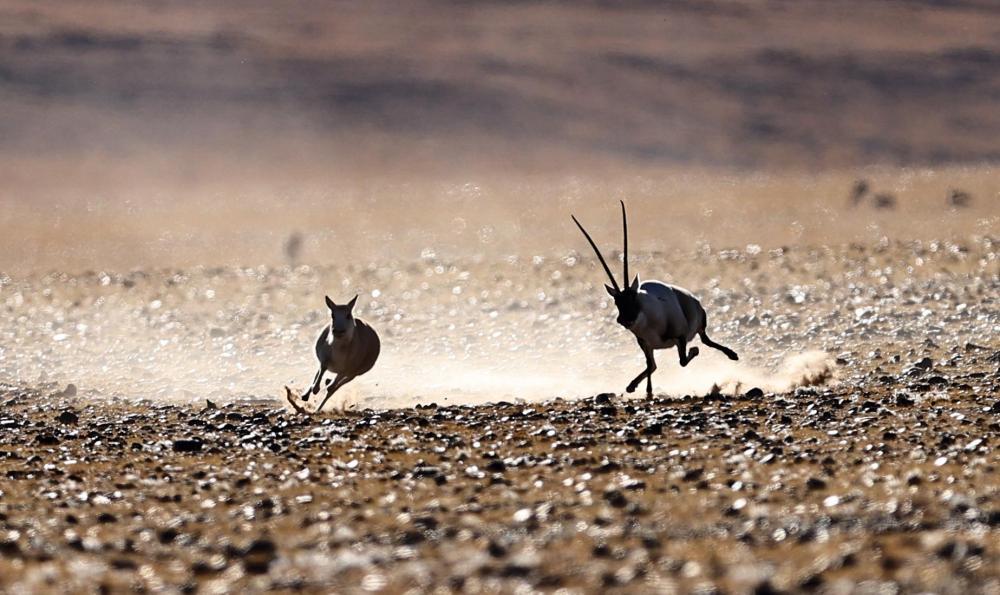 在阿爾金山國家級自然保護區,雄性藏羚羊(右)在追逐雌性藏羚羊(12月5日攝)。新华社记者 辛悦卫 摄