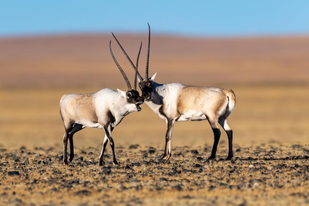 雄性藏羚羊通过决斗来争夺宝贵的交配权
