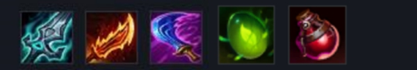 5、出装推荐:破败王者之刃、鬼索的狂暴之刃、智慧末刃、狂战士胫甲、踏苔蜥幼苗、生命药水