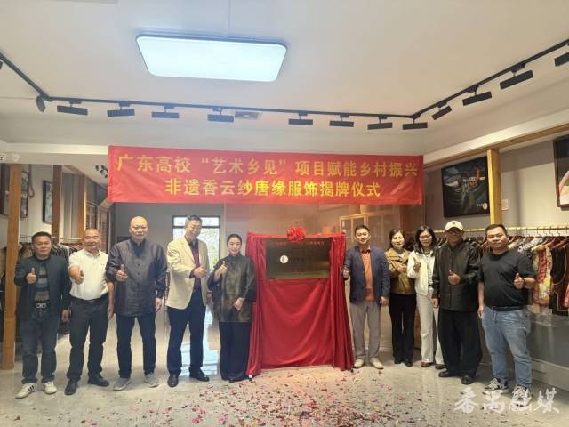 本次项目,村香产业南村镇板桥村以非遗香云纱为抓手,云纱联合广州科技贸易职业学院共建香云纱项目,振兴成功入选高校“艺术乡见”工作室培育项目,基地揭牌为乡村文化、广州人才和产业振兴开辟了新的番禺路径。