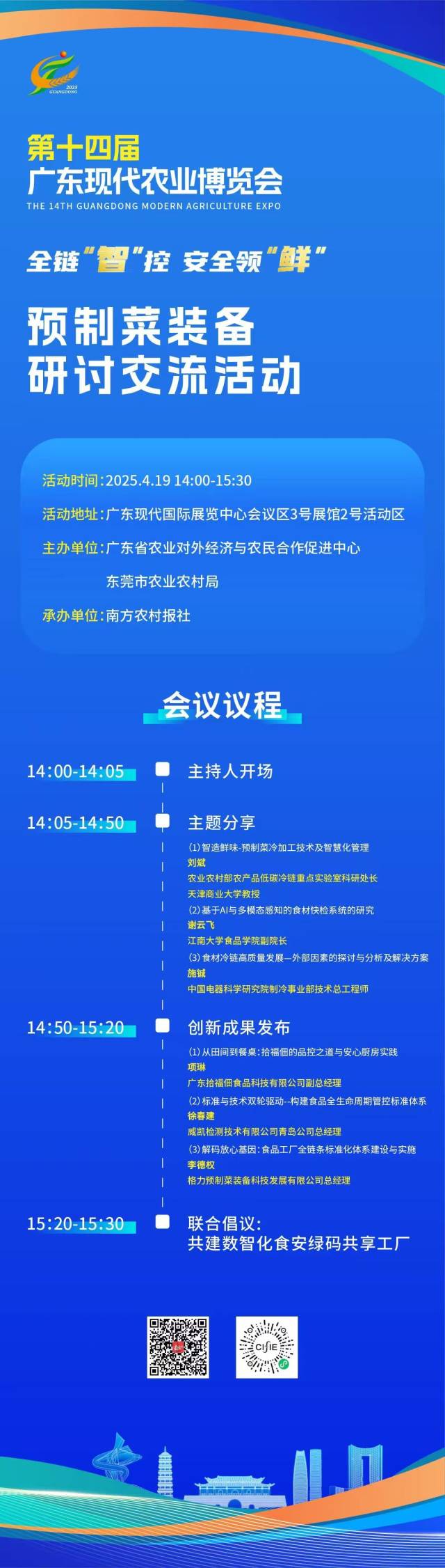本次会议由广东省农业对外经济与农民合作促进中心主办,南方农村报承办,广东省预制菜装备产业发展联合会等单位协办。届时,农业农村部、广东省农业农村厅等部门领导将出席会议。