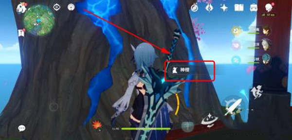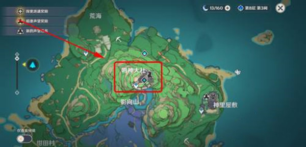 1、原神打开地图,神樱传送到稻妻的眷顾鸣神大社中去。
