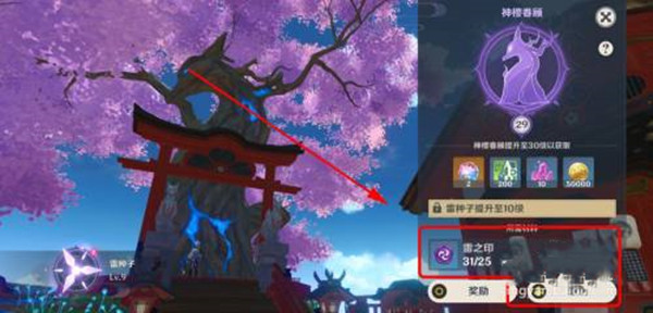 以上就是原神神樱眷顾等级提升方法,简而言之就是收集齐雷之印,25个雷之印兑换一次奖励。