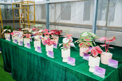 现场展出了花卉创新团队近300个花卉新品种,其中包括首次展出墨兰矮种红花系列新品种;兼具园林应用以及药用前景的“粤墨1号竹叶兰”;花型奇特、花色丰富多变的火焰蝶兰;重瓣大花具香味的“虎啸”朱顶红;植株小巧、已成功转化的“烈焰雄心”花叶芋;单花观赏期33天的“中科皇后兜兰”;抗病性、抗逆性较生长期短的“广花小乔红掌”和摆放花期长的“广花白马红掌”;抗病、耐湿热能力强的“婷粉”矮牵牛、“花城玫红”矮牵牛;花朵增多的“汕农蝶变”蝴蝶兰;花期约45天的“莞花彤云”石斛兰等众多亮点品种。