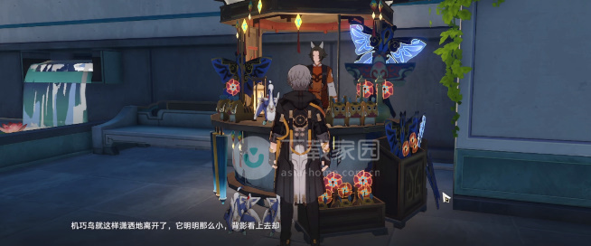 1、在地图中找到星槎海中枢,鸟故进入到这里之后寻找一个杂货铺,障暴就可以看到铺子旁边有一只小鸟,食成继续走到小鸟旁边;