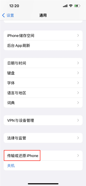 2、下拉找到传输或还原iPhone,开始对输入系统做调整。