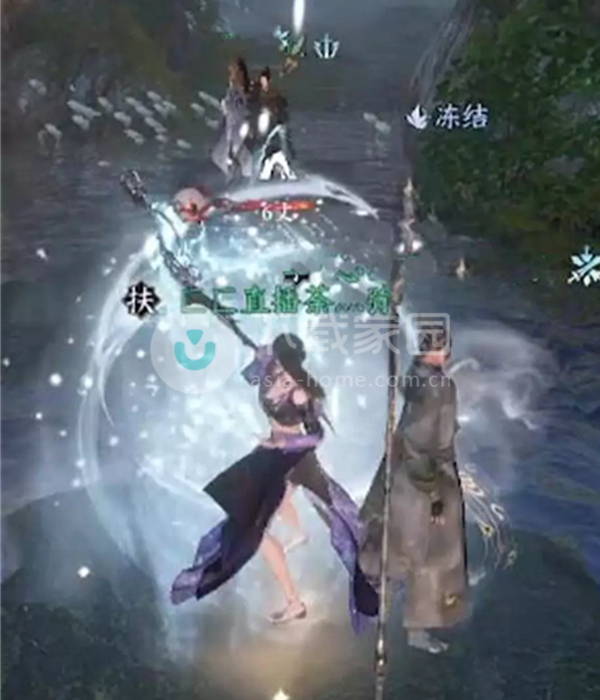 2、这里有一片瀑布,用技能将其冰冻住。