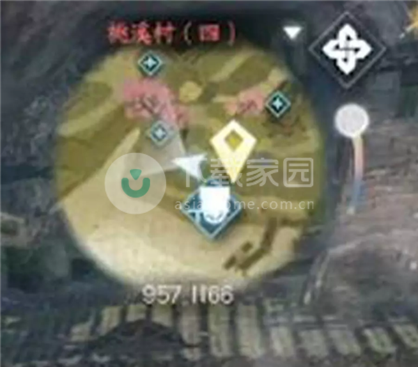 1、打开地图,前往桃溪村(957,1166)。