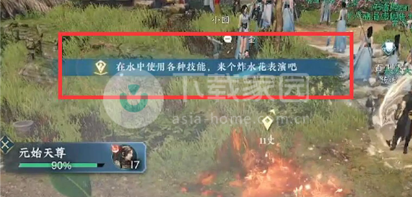 3、寒手随便用什么技能去击打水面,游答把炸起超大水花就可以解锁蛟龙得水技能了。