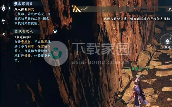 2、跟随任务指引,前往洞内(382,714)。