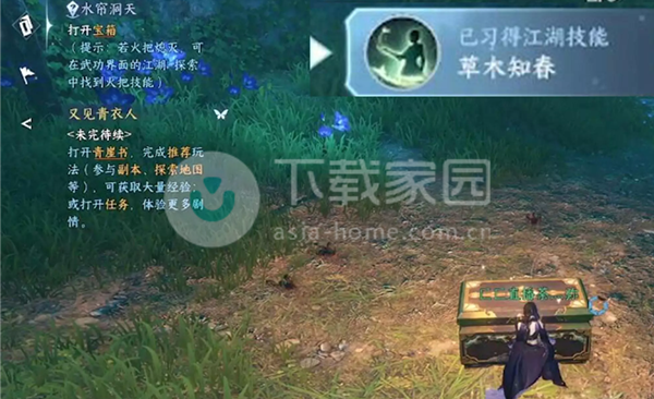 3、找到一个大箱子,打开宝箱获得草木知春技能。
