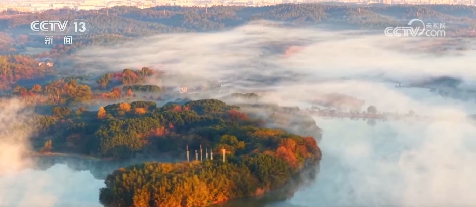 安徽池州:平天湖晨雾缭绕 尽显诗意山水之美