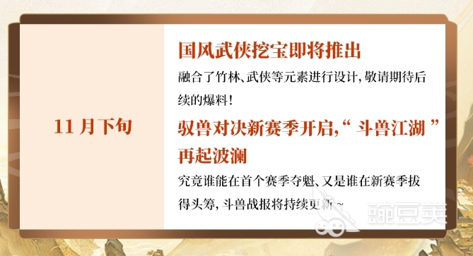 最后一个篇章就是国风侠气篇,在这个篇章当中大家是可以看到新的主题,也就是烛龙宝藏,在这个主题当中大家可以参与各种战斗玩法,这也属于是一个全新赛季的启程了,大家可以在第一个赛季中尝试斗兽战斗,而且这一次的主题其实是有武侠以及竹林等等元素的哦。