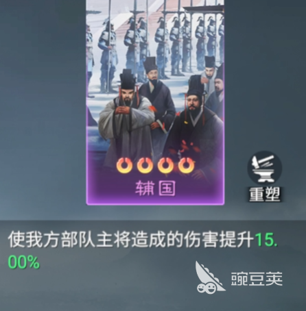 辅国这个技能卡其实放在前期很多玩家还不太会用,因为带来的加成效果比较简单,但是其实只要大家在上面能够找到适配的武将,这个技能的战力加成是非常厉害的,在其中大家可以根据技能卡的效果来给我方主将的效果增加15%左右的伤害提升能力,所以这个技能卡其实在搭配一些输出类型主将的时候效果最好,如果是智谋类型的武将这里可能提升的效果反而没有那么好,那么针对这里带来的百分比提升自然会让强势的队伍更加强势。