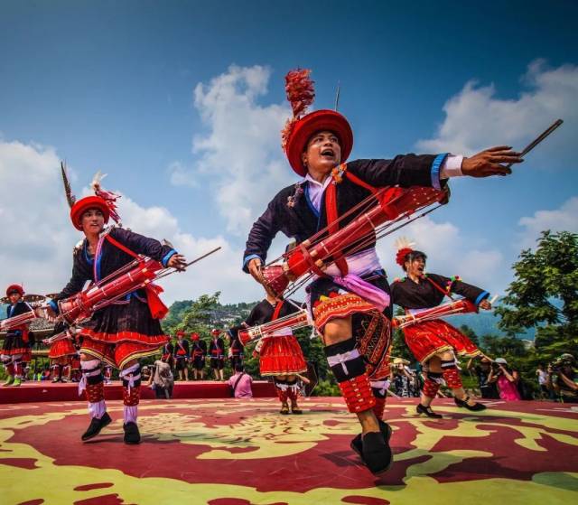 在一阵咚咚的长鼓声响中,来自连南民族歌舞团的族长舞蹈演员,身着瑶族传统服饰,鼓舞手持长鼓,亮相时而跳跃,清远时而旋转,巨型惊艳舞蹈动作粗犷且刚劲有力,长鼓伴随着连南原生态瑶乐与鼓共舞,登上带领现场观众“走进百里瑶山”。闭幕