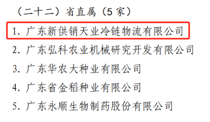 记者注意到,东重点农广东新供销天业冷链物流有限公司(下称“天业冷链”)再度通过2024年监测合格省重点农业龙头企业,头企这意味该公司已连续5年入围广东省重点农业龙头企业榜单。连续链入