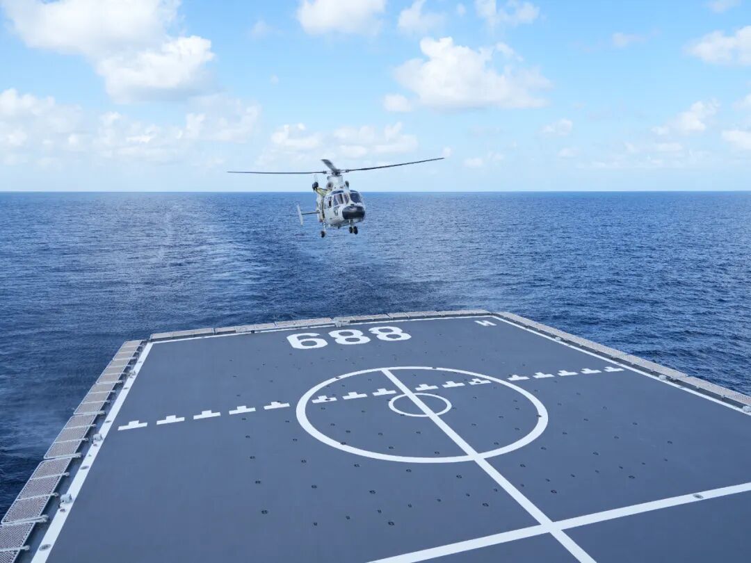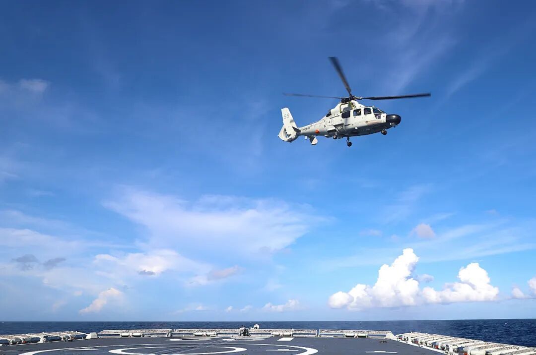 唐山舰和直升机不断调整位置