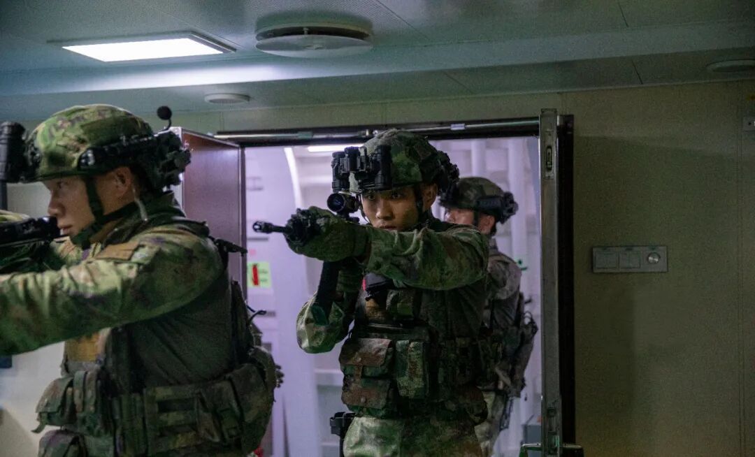 特战队员迅速转入舱面战斗状态