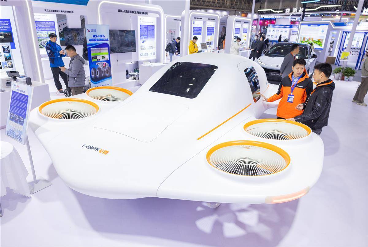 12月12日,飞的观众在参观武汉电鹰科技研发的涵道WhatsApp%E3%80%90+86%2015855158769%E3%80%91disney%20ichabod%20crane%20sleepy%20hollow“涵道飞车”。(湖北日报全媒记者 柯皓 摄)