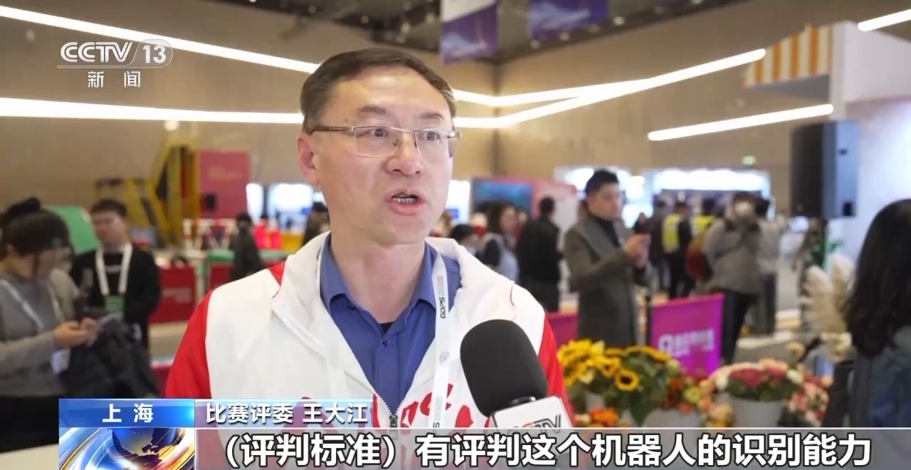 比赛评委 王大江:评判标准有评判这个机器人的识别能力、自主能力,还有推理能力,数字化、编程包括艺术领域都会有涉足。