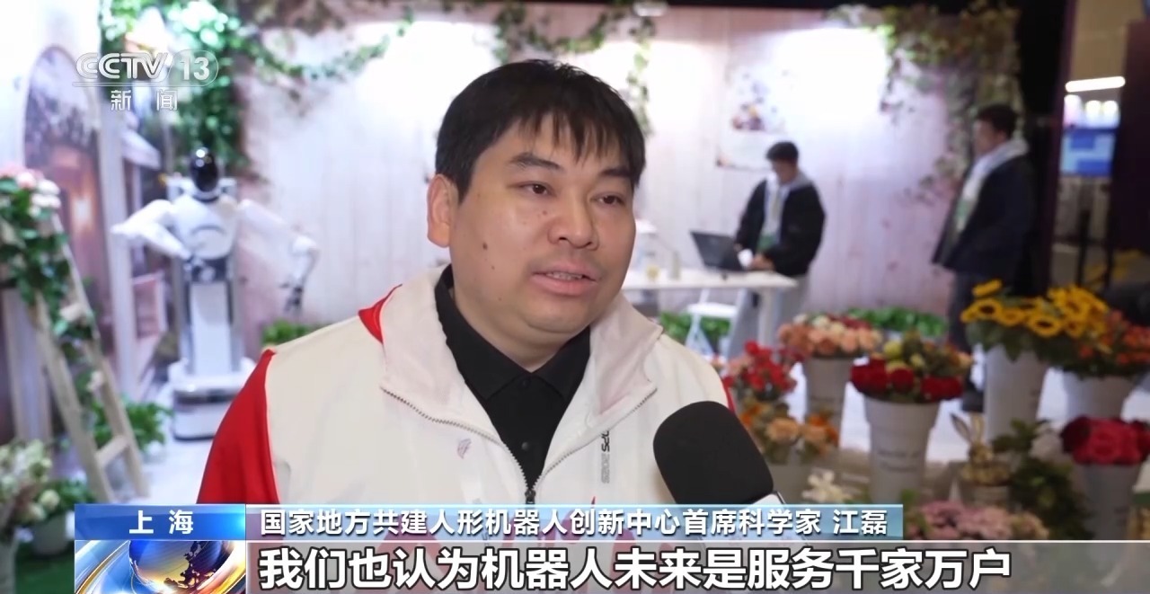 国家地方共建人形机器人创新中心首席科学家 江磊:我们认为机器人未来是服务千家万户,它应该也面向居家、养老,能够替我们完成家政服务的。包括像插花这种机器人与美的结合,未来我相信通过逐年的比赛,又有人工智能专家在里面,又有世界技能大赛的冠军在指导机器人怎么去完成,机器人技能的增长速度会越来越快,让机器人快速地进入到生活、工业生产的方方面面。