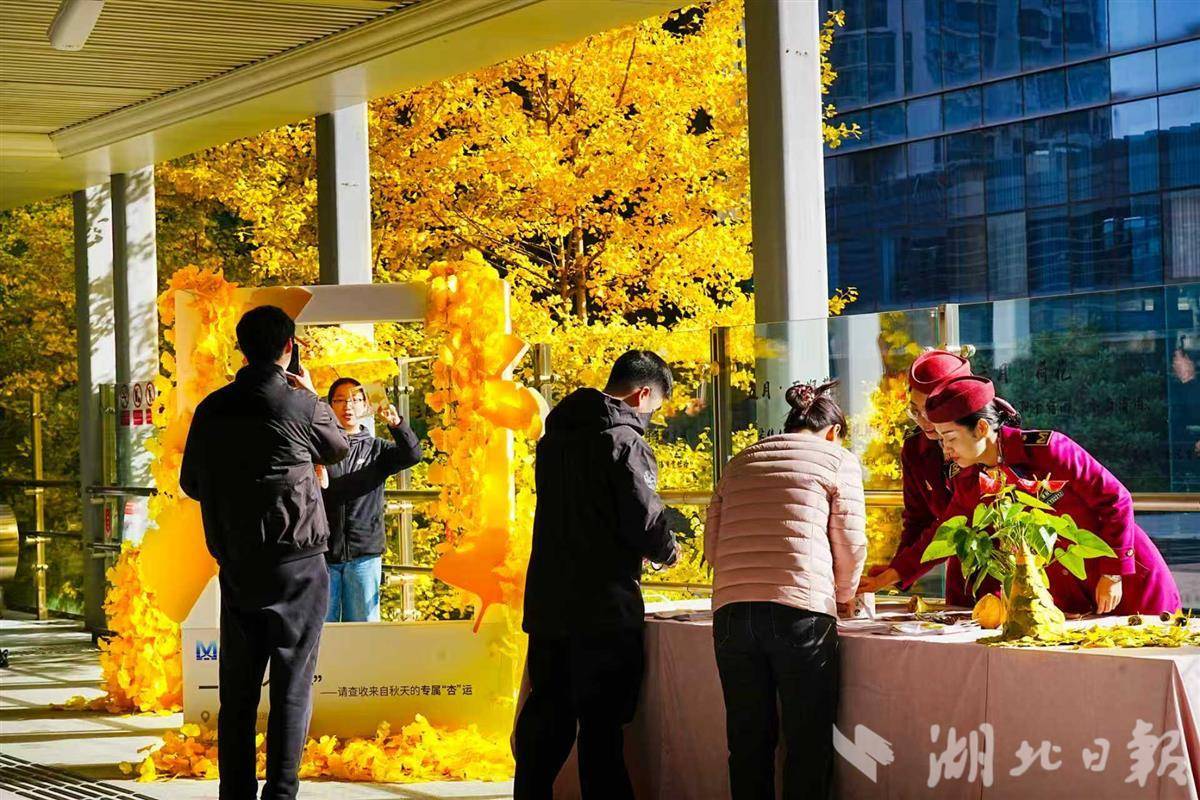 这些陪伴车站多年的银杏树,自2018年7号线开通时便已栽种,如今已成为三阳路站的一道独特风景。武汉地铁运营有限公司黄浦站区负责人李晶告诉记者:“从11月上旬开始,我们就陆续接到市民咨询银杏叶变黄情况的电话。为此,我们特别策划了‘银杏季’主题活动,通过设置特色打卡点、提供限量明信片和定制印章等方式,让市民能够更好地记录这份转瞬即逝的美好。”