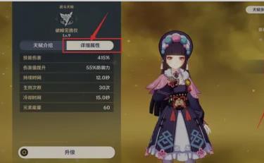 3、加成点击大招查看详情,云堇大招加成一种是加415%技能伤害,另一种是加55%的防御力。