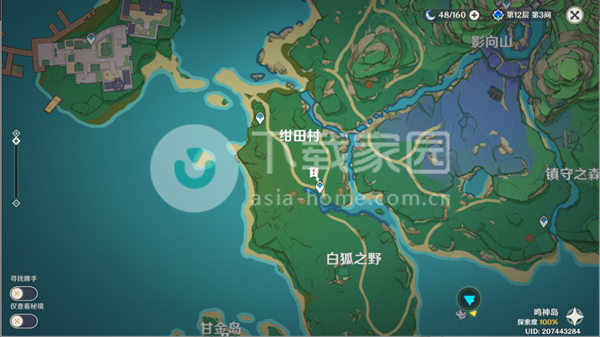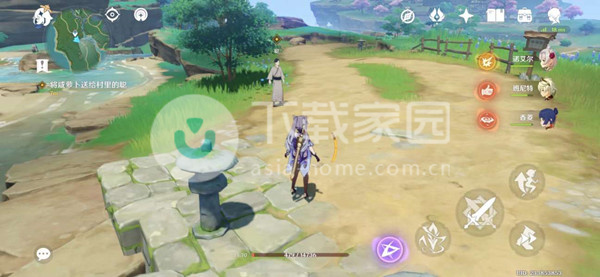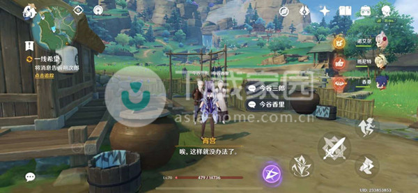 3、原神院位我们要帮助他们清理庭院,线希来到西边清理七处植物。望清