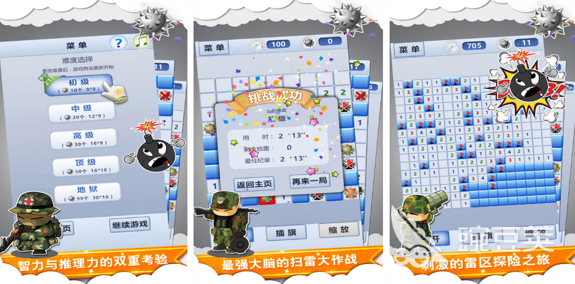 一款非常考验玩家记忆与推理能力的游戏,玩家将通过标记插旗,数字等判断雷的位置,游戏分有多个不同的难度等级,玩家可以自行根据自己的水平进行不同的等级进行游戏,你可以挑战来一次次打破自己的用时记录,充当合格的扫雷兵。