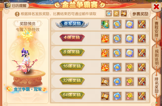 以上就是金兰争霸赛的赛事规则和奖励说明啦,预祝各位少侠在金兰争霸赛里一路披荆斩棘,顺利把心仪奖励带回家!