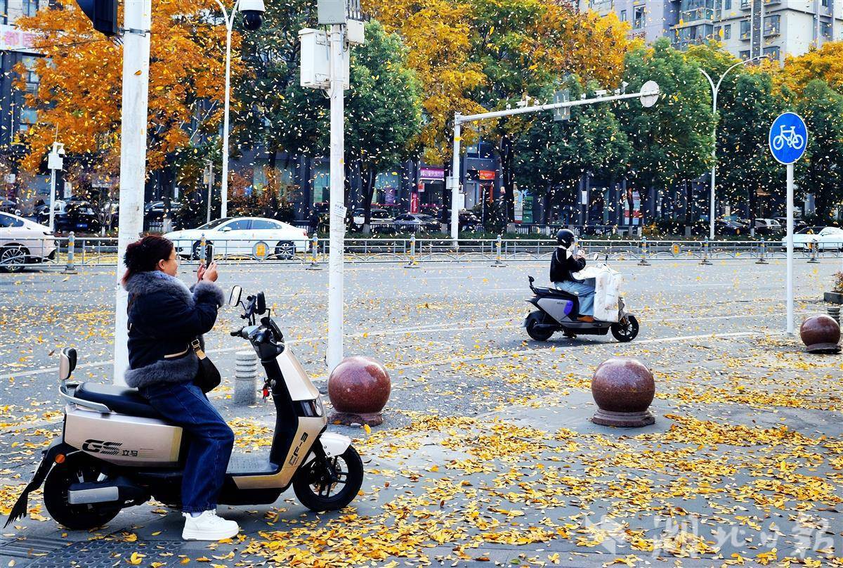 12月2日,降温受新一轮强泠空气的武汉影响,武汉市气温陡降,汉口新华路与发展大道交汇处,金黄的栾树叶随大风在空中旋转。