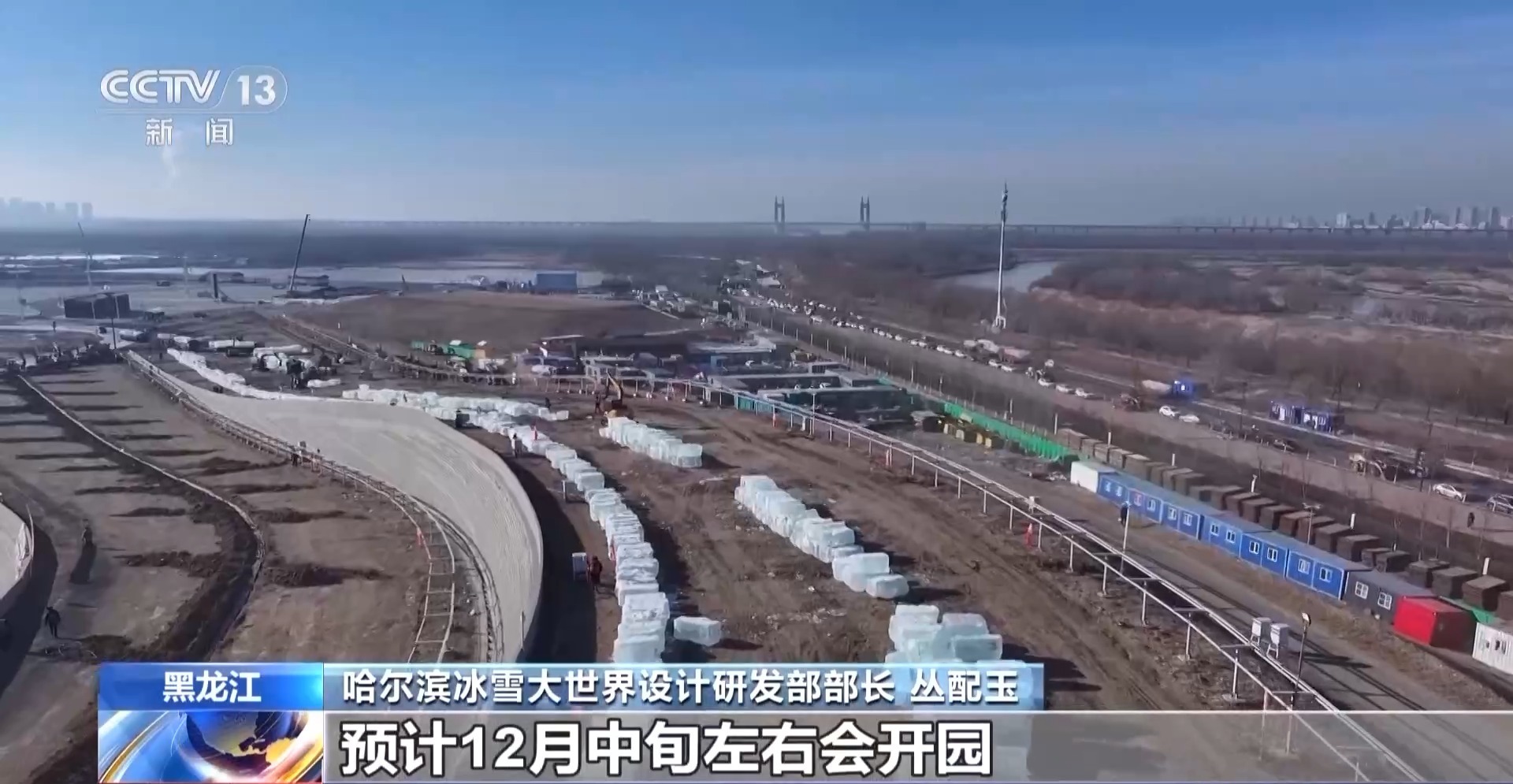 哈尔滨冰雪大世界设计研发部部长 丛配玉:现在吊装、运输、切割设备都已经进场,冰雕匠人也准备就绪。接下来,会有近万名建设人员在第二十七届哈尔滨冰雪大世界园区进行施工,预计12月中旬左右会开园,到时候与游客见面。