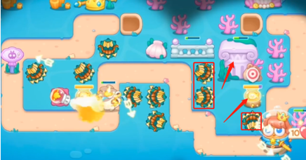 4、第关在右边灯旁边多建造多重箭即可通关;