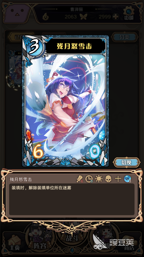 2、被动技能:我方开始战斗的时候,自动随机破除敌方两个雾地。