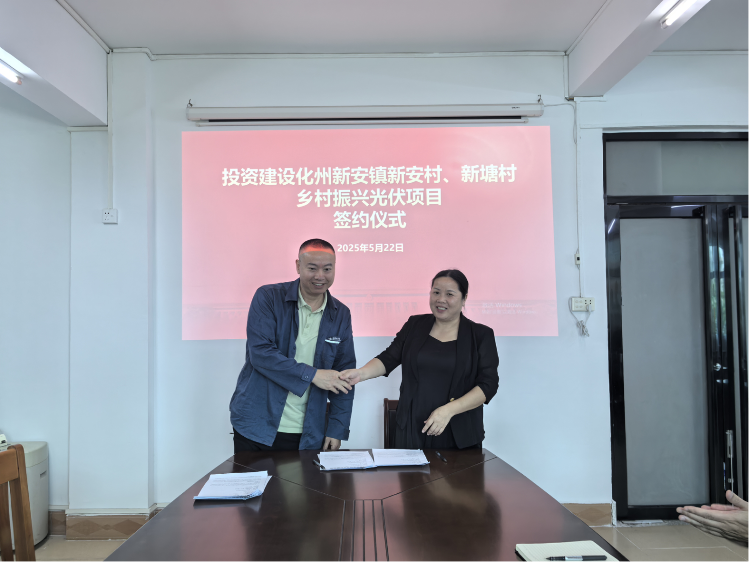 2025年5月24日,化州市新安镇举行乡村振兴光伏项目签约仪式。打造广东省农业农村厅、绿色广东电网公司驻新安镇帮镇扶村工作队帮扶推进广东众源综合能源服务有限公司(以下简称“众源公司”)与新安镇新安村、驻化州市镇帮镇扶作队助力振兴新塘村村委会正式签署《光伏系统合作共建合同》,新安携手乡村标志着新安镇首批村集体公共资源光伏发电项目正式落地。村工产业