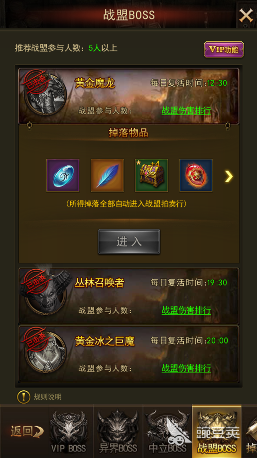 中立boss也是会掉落洛克之羽的,这里小编并不是十分建议大家去打这个boss,战斗难度高,而且人也是比较多的,如果要去的话,最好是叫上战盟的人员一起前往。