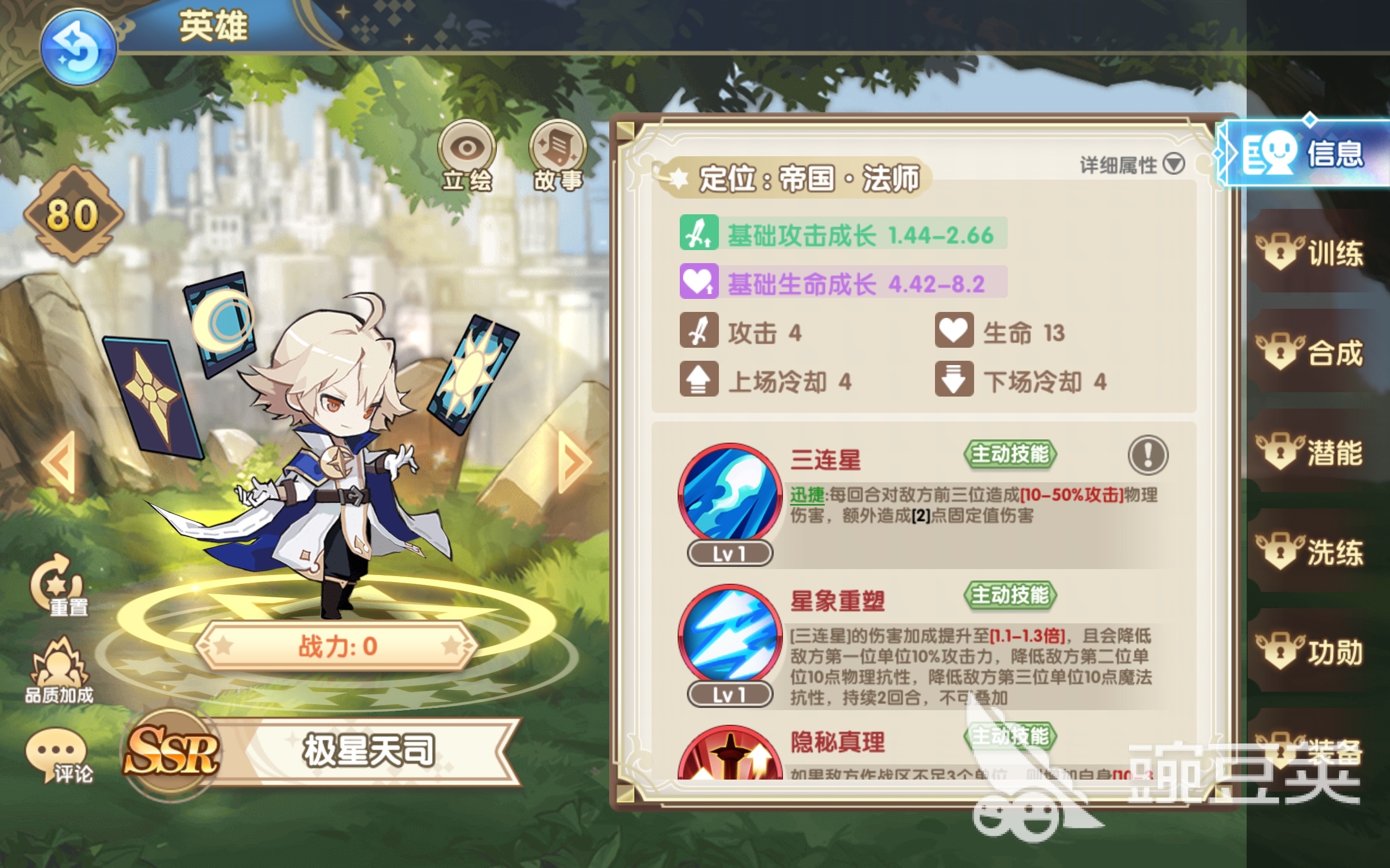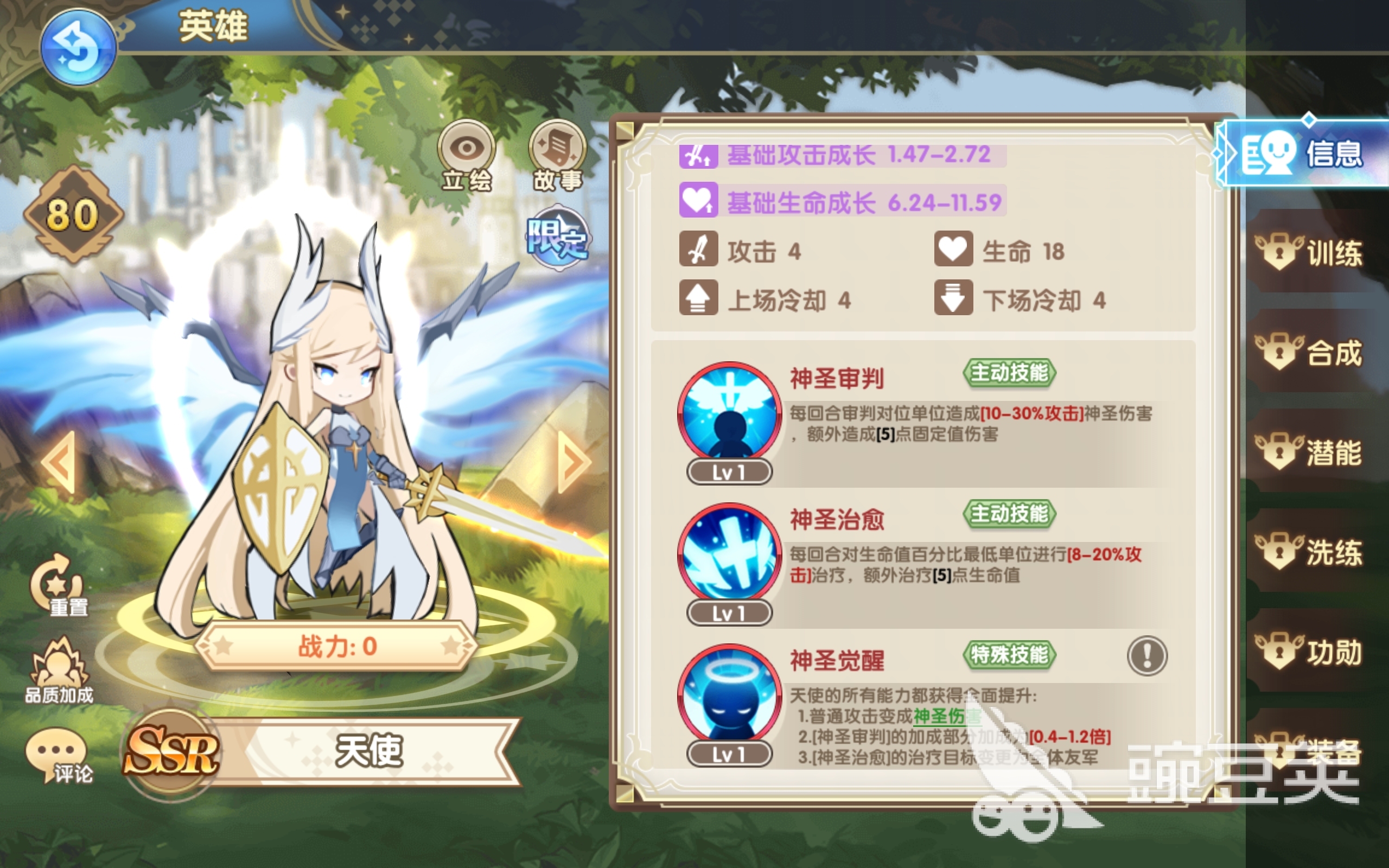 除了法师外,还要有能打能抗的角色,既能抗伤害,又能攻击敌人C位。这里推荐用天使,一技能可对敌人造成高额伤害,二技能则可治疗队友或者自己,目标则是血量最低的人。大招能够全面提升自身属性,普攻伤害变高,还能将治疗目标改为所有队友,奶力十足!