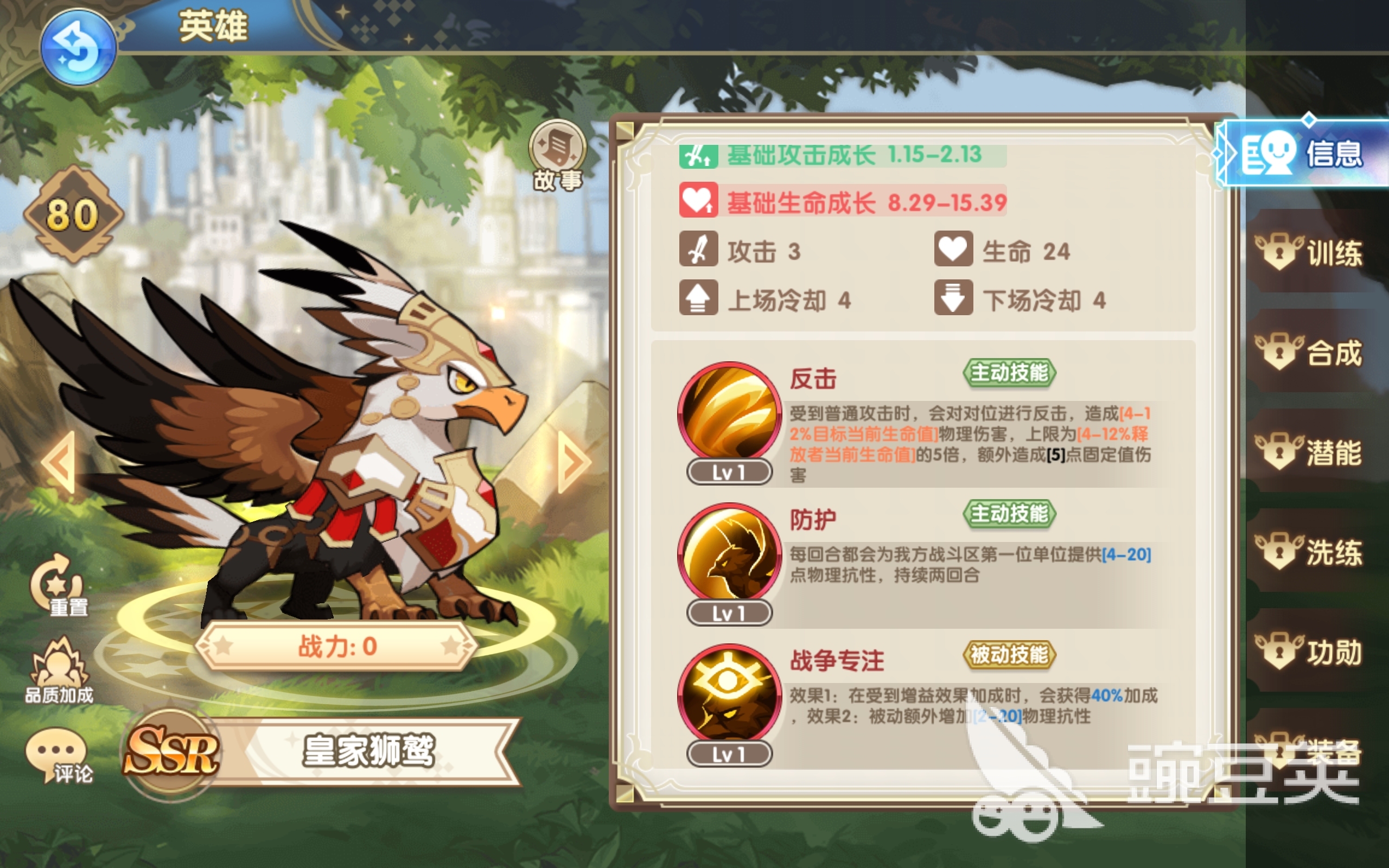 敌人的攻击很强,很容易将其他角色弄死,所以都有坦克撑腰。推荐使用皇家狮鹫,他受到平A时,有会进行反击造成高额输出。二技能则是为前排角色增加物理抗性,防御力进一步提升。三技能则是获得增益效果时,提升40%的加成效果,还能提升更多物理抗性,特别能抗。