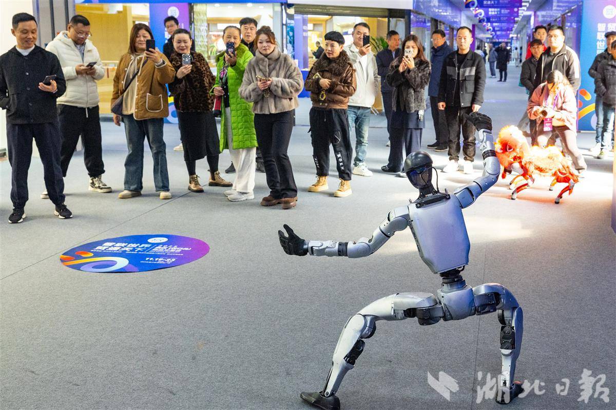图为在主展区,机器人现场进行武术表演,科技感十足。