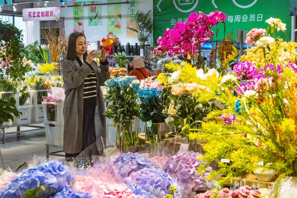 图为在汉口北鲜花小镇国际花卉与花艺交流展区,市民挑选鲜花。