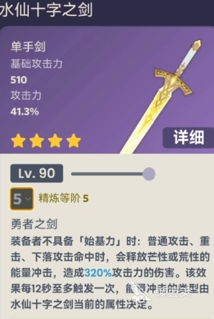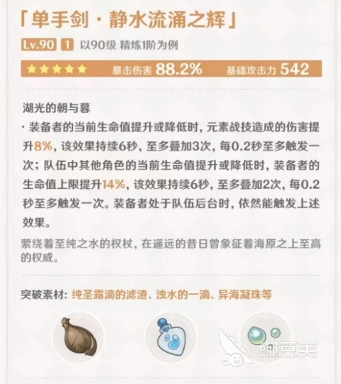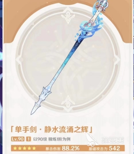 第二把新武器则是五星的“静水流涌之辉”,该武器属于新角色水神芙宁娜的专武,其品质和属性自然要比四星高出一筹,542的基础攻击和88.2%的暴伤加成令角色在进攻端得到了极为明显的加强。