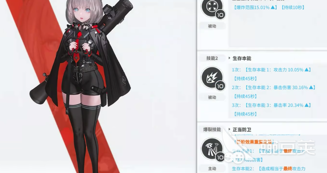 第二个被动技能是生存本能,在贝斯蒂使用爆发技能期间,其基础攻击倍率可以提升3.16%,同时维系时间为三十秒钟,如若玩家在正处于生存本能的期间之下,使用爆裂技能,其暴击伤害还能够提升13.2%。