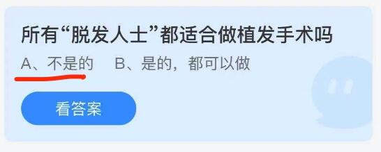 解析:脱发手术有禁区,大量脱发期间的答案人群斑秃等情况是不能做的,容易出问题。蚂蚁