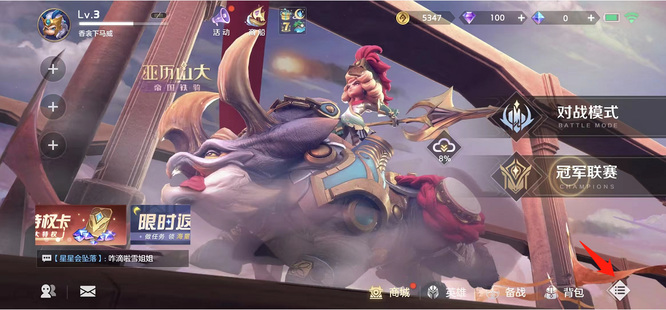 1、看位进入游戏主页面,置介点击右下角的曙光绍【三条杠】按钮。