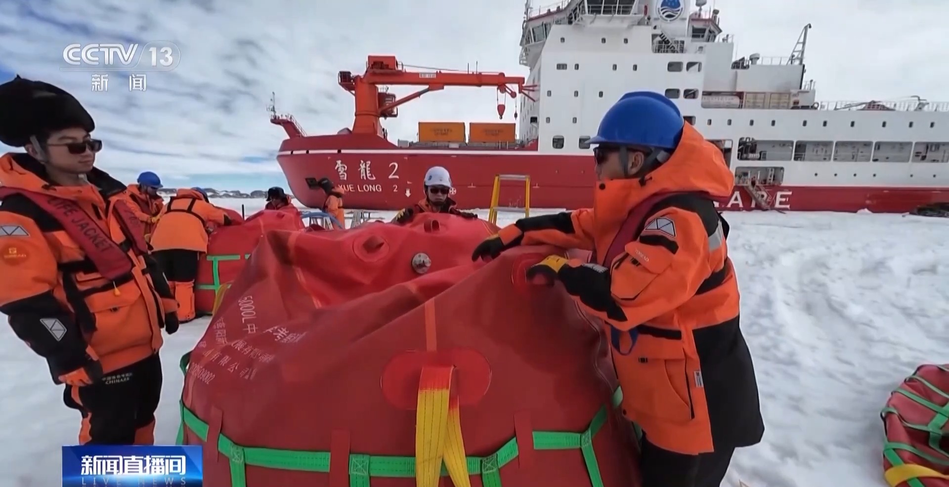 此次考察活动,“雪龙”号和“雪龙2”号上都装载了中山站区域的物资,尤其是先行抵达中山站外围卸货作业点的“雪龙2”号,此次是首次给中山站供应极地用燃油,“雪龙2”号的队员们也迎来了首次在海冰上给油囊加油的作业任务。