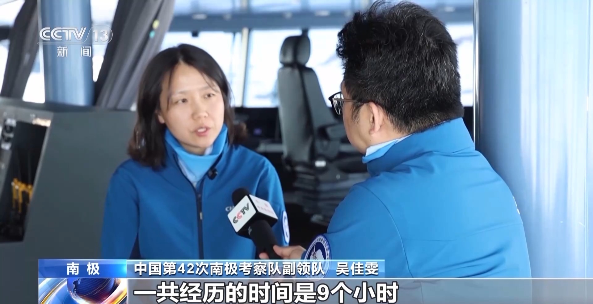 中国第42次南极考察队副领队 吴佳雯:从前期到后面开始,一共经历的时间是9个小时,行进了900米。我们有一个驾驶员跟我说真不好意思,这么长时间才让船动了这么短的距离。确实还是比较艰难的。
