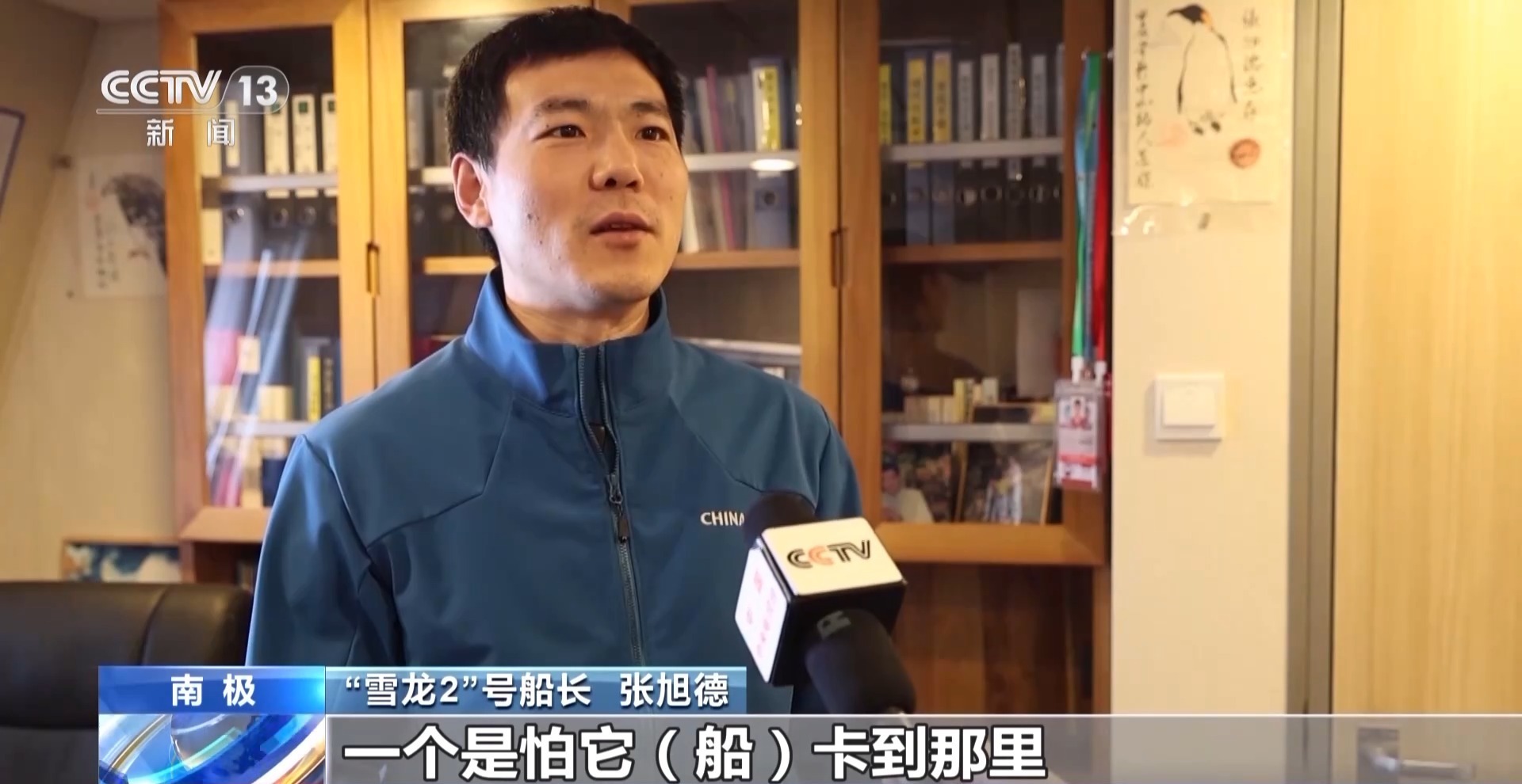 “雪龙2”号船长 张旭德:一个是怕船卡到那里不动,一个是完全不知道前面的冰是什么样子,也不知道厚度是多少,这种无形的压力也比较大。