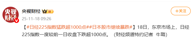 簡介據(jù)@央視財經(jīng) 消息,18日,東京市場上,日經(jīng)225指數(shù)一度較前一日收盤下跌超1000點。財經(jīng)頻道特約記者 牛璐)編輯 辛婧 ...